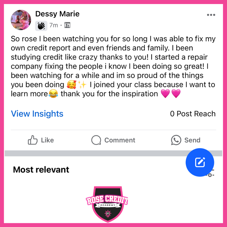 In a natural progression, she stepped away from her 9-5 and started Rose Credit Academy.